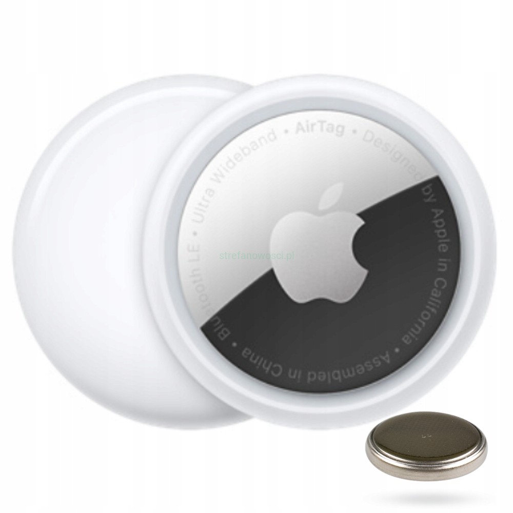 - Zawartość opakowania: AirTag z włożoną baterią CR2032, Dokumentacja, GRATIS zapasowa bateria