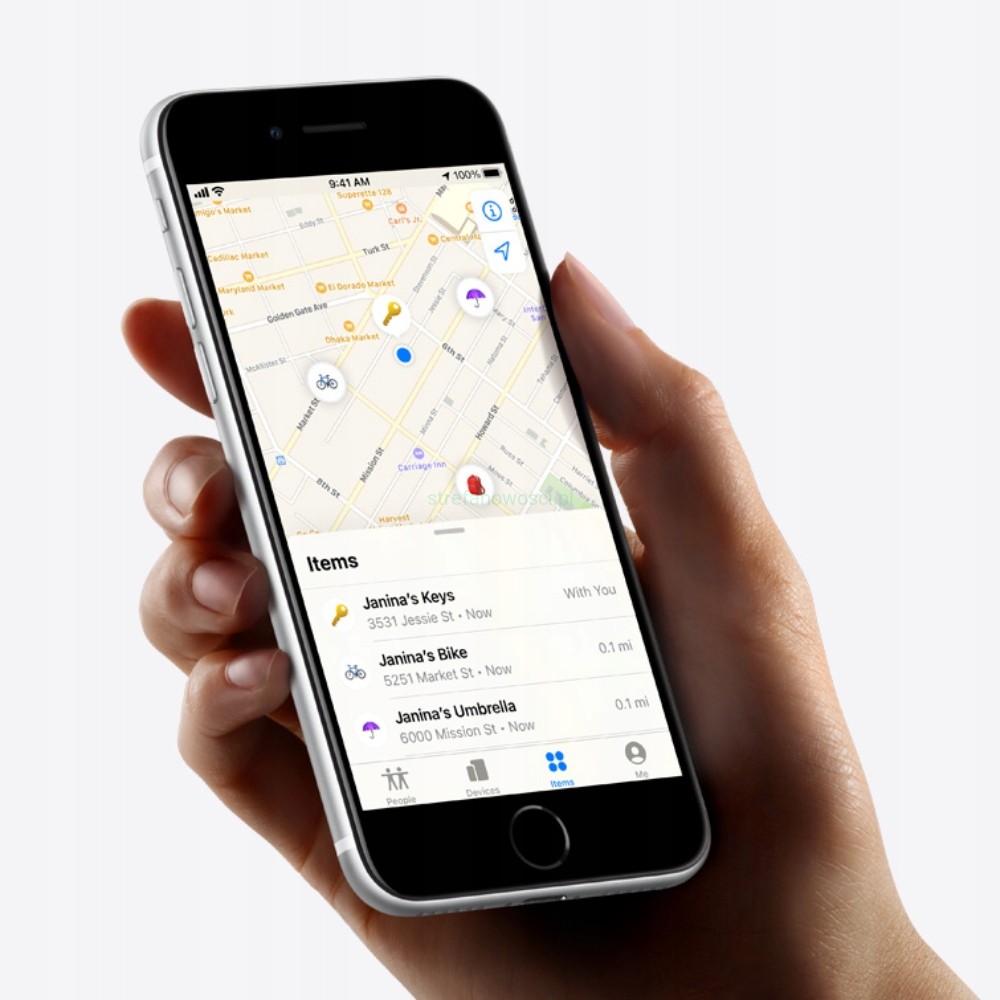 AirTag emituje zabezpieczony sygnał Bluetooth, który wykrywają pobliskie urządzenia należące do sieci usługi Znajdź mój. Urządzenia przesyłają informację o położeniu AirTaga do chmury iCloud, która z kolei jest połączona z apką Lokalizator. Otwierasz apkę i od razu widzisz AirTaga na mapie. Cały proces jest anonimowy i szyfrowany, żeby chronić prywatność. A przy tym wydajny, więc zużywa niewiele energii i danych komórkowych.