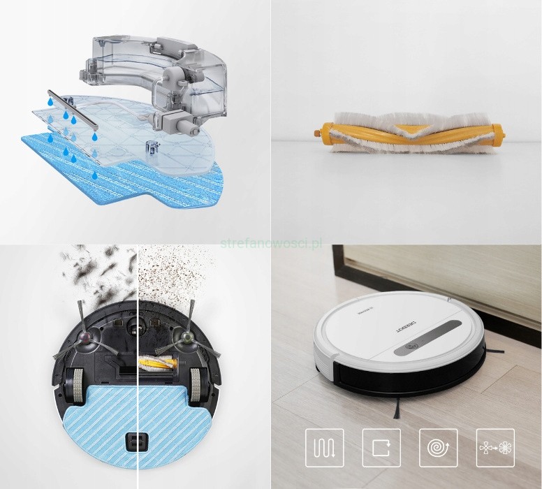 - Nowa jakość sprzątania z systemem mycia OZMO. Sterowana elektronicznie pompa wodna regularnie pobiera wodę ze zbiornika o pojemności 300 ml, co umożliwia mycie podłogi na mokro. Ponadto robot wyposażony jest w czujniki pozwalające na automatyczne przełączanie w tryb mycia lub zatrzymanie zwilżania – dzięki temu sprzątanie jest bezpieczne i dokładne.