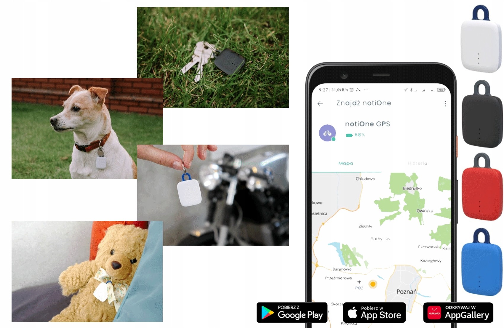 - Z notiOne zabezpieczysz wszystko, co dla Ciebie ważne: klucze, kluczyki samochodowe, portfel, torebkę, walizkę, plecak, dziecko, seniora, psa, kota, rower, hulajnogę, motocykl, samochód, laptopa i wiele więcej!