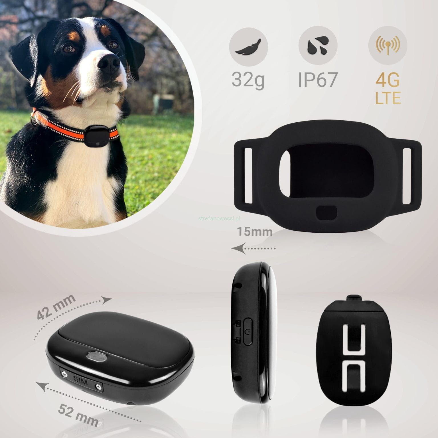 Dzięki gumowemu uchwytowi lokalizator GPS można łatwo i bezpiecznie przymocować do kołnierza