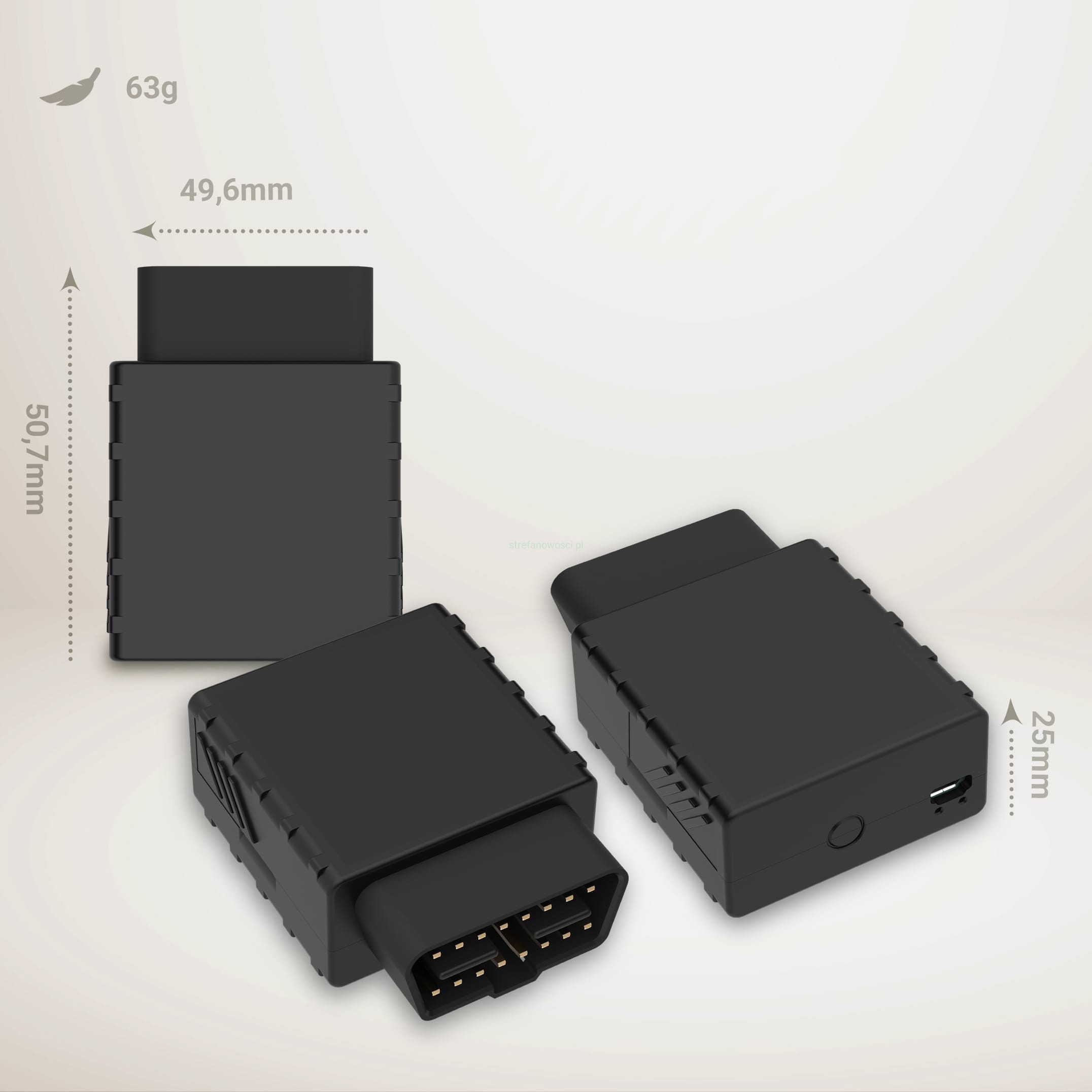 - Wymiary 50,7 mm x 49,6 mm x 25 mm