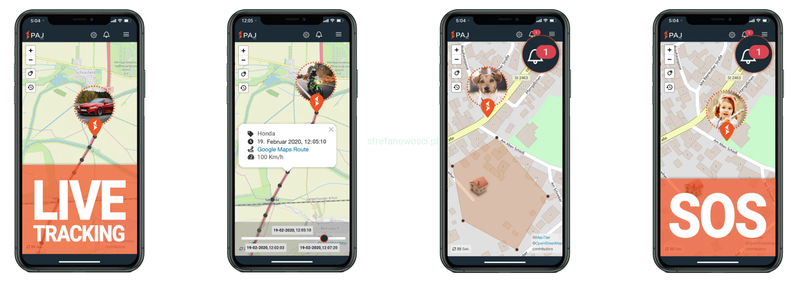 - ŚLEDZENIE NA ŻYWO. W dowolnym momencie możesz sprawdzić, gdzie znajduje się Twój moduł śledzący.