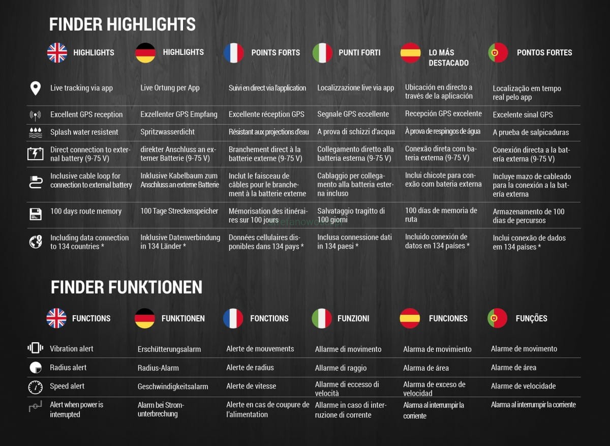 Aby korzystać z pełnego zestawu opłata za połączenie danych i portal FINDER wynosi zaledwie 4,99 € miesięcznie (miesięczny okres wypowiedzenia). Płatne przez PayPal lub/i kartę płatniczą/kredytową. Urządzenia i portal firmy PAJ GPS współpracują tylko z kartą SIM M2M dostępną w zestawie z lokalizatorem GPS. Dzięki temu możesz cieszyć się wszystkimi zaletami.