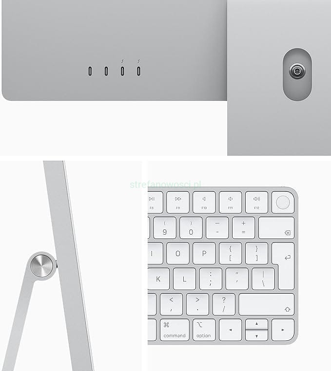 - PEŁNO POŁĄCZEŃ – iMac ma dwa porty Thunderbolt / USB 4, maksymalnie dwa porty USB 3 i gniazdo słuchawkowe. (Dostępna wersja z portem Gigabit Ethernet). A bezproblemową łączność bezprzewodową zapewniają interfejsy Wi‑Fi 6E i Bluetooth 5.3.