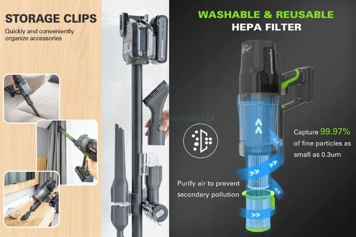 Odkurzacz Greenworks 24V GD24SVK4D bezprzewodowy 500W / USB / powerbank /jak Dyson