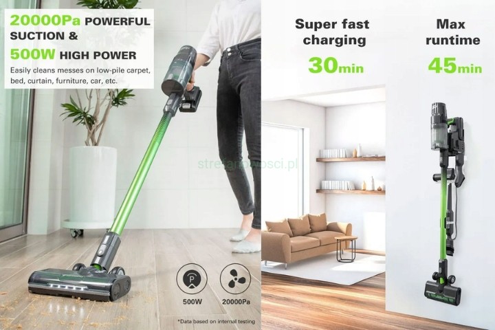 Dzięki swej mocy urządzenie może zastąpić zwykły odkurzacz na kablu a komfort używania znacznie go przewyższa, dodatkowo w zestawie jest wiele ssawek/końcówek.