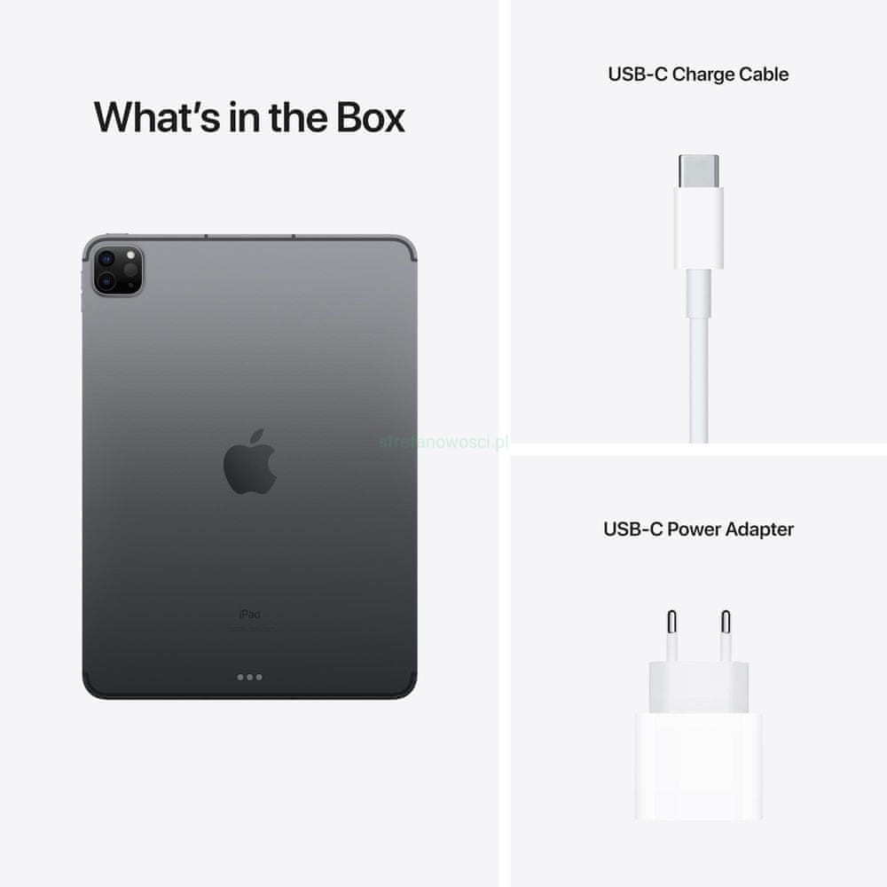 iPad Pro ma też najwięcej pasm ze wszystkich urządzeń tego typu, więc sieć 5G jest częściej dostępna; WiFi 6; Cokolwiek chcesz zrobić, szybka łączność bezprzewodowa to podstawa. Z interfejsem WiFi 6 masz gwarancję, że gdy tylko złapiesz WiFi, to najszybsze, jakie jest. Aparat ultraszerokokątny z funkcją Centrum uwagi; iPad Pro ma nowy aparat ultraszerokokątny z matrycą 12 MP o 122-stopniowym polu widzenia, który idealnie nadaje się do rozmów FaceTime i obsługi nowej funkcji Centrum uwagi. Pozwala też robić spektakularne selfie w Trybie portretowym. A we współpracy z aparatem TrueDepth bezpiecznie odblokowywać iPada Pro za pomocą Face ID. Centrum uwagi; To nowa funkcja, która wykorzystuje aparat ultraszerokokątny i technologię samouczenia, żeby odmienić Twoje wideorozmowy. Kiedy się poruszasz, kamera sama podąża za Tobą. A gdy inne osoby dołączają do konwersacji lub ją opuszczają, widok odpowiednio oddala się lub przybliża. I to nie tylko w FaceTime, ale też w innych apkach do wideorozmów. Pro aparaty; Aparatem szerokokątnym i ultraszerokokątnym uchwycisz fantastyczne kadry na zdjęciach i filmach wideo. Nakręcisz nawet profesjonalne ujęcia wielokamerowe. A dzięki potężniejszemu procesorowi ISP w czipie M1 iPad Pro ma teraz także tryb Inteligentnego HDR 3. Skaner LiDAR; Skaner LiDAR mierzy czas drogi powrotnej światła odbitego od obiektów. W efekcie powstaje mapa głębi Twojego otoczenia, dzięki której rzeczywistość rozszerzona dostarcza absolutnie wyjątkowych wrażeń. A we współpracy z potężnym procesorem ISP LiDAR wyostrza niedoświetlone zdjęcia i wideo oraz skraca czas ich rejestracji. Potężne narzędzia dla twórców; Thunderbolt to najszybszy i najbardziej wszechstronny port, jaki kiedykolwiek miał iPad. Działa z obecnie stosowanymi złączami USBC i otwiera dla iPada Pro rozległy ekosystem wysoce wydajnych akcesoriów, takich jak szybkie zewnętrzne pamięci masowe, wyświetlacze i stacje dokujące. Możesz więc śmiało przesyłać olbrzymie pliki, a nawet korzystać z wyświetlacza Pro Display XDR w pełnej rozdzielczości 6K.