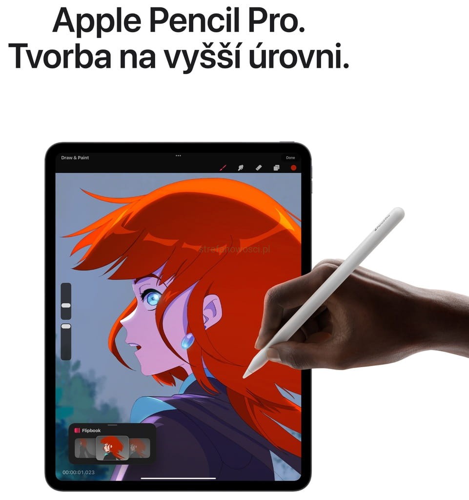 • APPLE PENCIL I MAGIC KEYBOARD DO IPADA PRO– Z Apple Pencil Pro możesz przekształcić iPada Pro w dające niepowtarzalne możliwości płótno malarskie lub najwspanialszy na świecie notatnik. Z iPadem Pro działa też Apple Pencil (USB‑C). Magic Keyboard do iPada Pro to wygodna, smukła i lekka klawiatura wyposażona w szklany wbudowany gładzik z sygnałami haptycznymi, a jednocześnie nakładka ochronna na iPada. Akcesoria są sprzedawane oddzielnie.